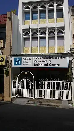 SEGi College Penang is a private college for higher education located in George Town, Penang.[1][2] It serves as SEGi University's education hub for students in the Northern region of Malaysia. SEGi College Penang offers industry-driven diploma and degree programmes in various disciplines. SEGi College Penang offers business, accounting, computing, engineering etc. courses. The college also offers programmes affiliated with University of Sunderland, University of Greenwich and Troy University. SEGi College Penang is rated as a MyQuest 5 Star college.[3][4]