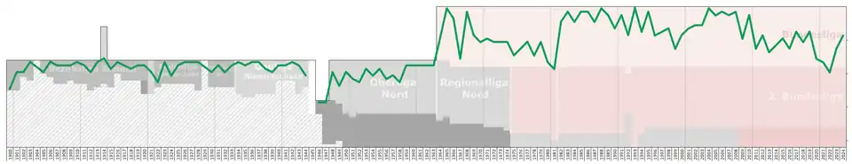 Historical chart of Werder's league performance