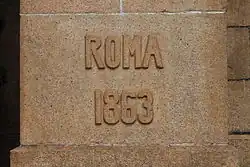 Construction of the foundation began on June 28, 1861, the Feast of the Sacred Heart, and concluded in 1863. On December 8, the Feast of the Immaculate Conception, with surrounding Chinese houses and streets decorated, a grand ceremony was held, attended by the Viceroy of Liangguang, all senior Mandarins, a detachment of 300 Manchu troops, all consuls in Canton as well as the missionaries and a score of priests. The bishop and the consul of France, Baron Gilbert de Trenqualye, delivered speeches. Two foundation stones were blessed and laid. The words "Jerusalem 1863" were engraved on the east one and "Roma 1863" on the west one, in reference to the Catholic Church's origin in Jerusalem in the east and headed on Earth by the Pope in Rome in the west. One kilogram of soil taken from Rome and one stone from Jerusalem were laid under the respective foundation stones.
