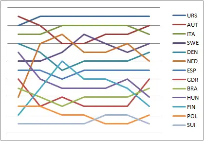 Graph showing the daily standings in the Star during the 1980 Summer Olympics