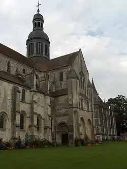 About 1260, Pierre de Wessencourt, the 25th abbot, built the Marian Chapel at the chevet of the abbey church, which closely resembled the Sainte-Chapelle in Paris, built a few years earlier. It is connected to the main church by a narrow passage, and is composed of three vaults with stained glass window-walls. While less lofty than the Sainte-Chapelle, and without its original painted interior, the stonework is more decorated and detailed than the Sainte-Chapelle.[1] It was used as a funerary chapel.