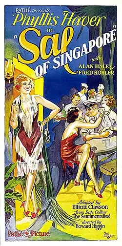 Sal of Singapore is a 1928 American sound part-talkie drama film directed by Howard Higgin. In addition to sequences with audible dialogue or talking sequences, the film features a synchronized musical score and sound effects along with English intertitles. The film's sets were designed by the art director Edward C. Jewell. Complete prints of the film exist.[1]