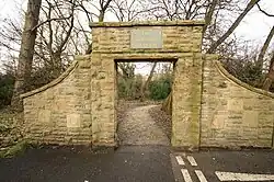 The neighbouring Blackpool Zoo site was formerly Blackpool's municipal airport.[3] In 1927 the local council announced that an aerodrome would be built near Stanley Park, which would become Blackpool Stanley Park Airport offering flights to the Isle of Man.[4] The airport was officially opened by then British Prime Minister, Ramsay MacDonald in 1931.[3] However, with the opening of Squires Gate Airport a decision was made in 1936 by the Ministry of Transport to close the airport at Stanley Park. The airport closed a year later.[4] During the Second World War the airport was used as a Royal Air Force training station, known as No. 3 School of Technical Training. The land that the airport stood on now covers Blackpool Zoo as well as a hotel and golf course. The hangars from the old airport are still in use as the elephant enclosure for the zoo.[3] Evidence of the area's history can also be seen today with the pill box to the east of the gardens.
