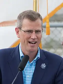 Kennedy was named the successor to longtime Red Sox president Lucchino on August 1, 2015, when Lucchino announced his decision to retire from his executive positions at the close of the team's 2015 season.[6] Lucchino's CEO post was initially left vacant, and on August 18, 2015, the Red Sox also named veteran MLB executive Dave Dombrowski to the new position of president, baseball operations.[7][8] On August 2, 2017, the Red Sox and FSM announced Kennedy's appointment as CEO, and signed him to a new five-year contract as both CEO and president.[9] In March 2021, FSG announced that Kennedy had joined its ownership group and become a partner.[10] Three years later, Kennedy was promoted to FSG's chief executive post.[11]