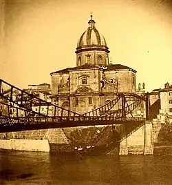 Iron bridge at San Giovanni dei Fiorentini, ca. 1890. The bridge was built in 1827 and demolished in 1941. Photo by Giuseppe Primoli.