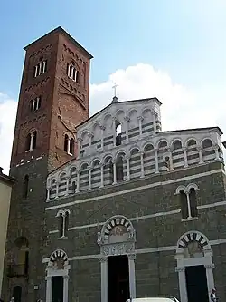The central portal has a sculpted relief depicting St Paul gaining keys (1248) by Guido Bigarelli of Como.[1][2]