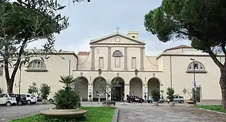 Originally, the site hosted a chapel titled Santa Maria a Valiana, which housed a venerated image of the Madonna, engraved on an oak trunk. In 1515 the church was enlarged by Medici, and the administration was transferred to the Franciscans. It has a single nave plan with chapels on the sides; the apse and the roof, destroyed by an allied bombardment, were rebuilt after world war II. The chapel of the Madonna was designed by Pasquale Poccianti in the 19th century. It has a neo-Classical plan with stucco decorations by Emilio Santarelli. In the middle there is a small temple by Amalia Dupré that shelters the venerated icon of the "Madonna di San Romano".[1]