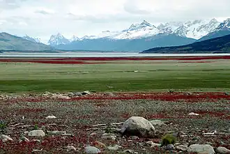 The province is generally divided into two distinct regions: The Andes in the west and the plateaux in the centre and east.[15] In the Andes, there are numerous lakes such as Buenos Aires Lake (2,240 km2, 881 km2 in Argentina), Cardiel Lake (460 km2), Viedma Lake (1,082 km2), Argentino Lake (1,560 km2), Pueyrredón Lake, Belgrano Lake and San Martín Lake (1,013 km2).[15] One characteristic of the Andean region is the presence of the Southern Patagonian Ice Field that covers the central part of the Andes.[15]