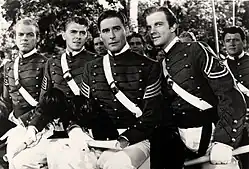 John Wayne was mentioned as a possibility for Flynn's costar.[6] Dennis Morgan was announced for the role of George Custer.[7] Morgan was borrowed to appear in Kitty Foyle and replaced by Ronald Reagan before filming began. Van Heflin was signed to play the villain following his success on Broadway in The Philadelphia Story; it was his first movie since 1937.[8]
