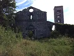 Construction here putatively started in the 9th-century, linked to a victory by the army of Charlemagne against a marauding Saracen army in the plain nearby.[1] The first documentation of the monastery is found in documents from the Abbey of Farfa, and controlled much of the surrounding territory. The Abbey is also mentioned in documents by popes Leo X and Innocent X.[2] An inscription on the façade states that presbyter Bartholomew restored the church in 1219. By the early 1500s, the monastery fell in to rapid decline. Replaced by Franciscans in 1582, the Benedictines were reintroduced in 1683. But ultimately the monastery was abandoned after the Napoleonic invasion. The land was used as a cemetery in the 19th-century but the structures continued to be looted for stone.[3] An earthquake in the 19th-century caused near collapse. The present ruins were reconstructed in the 1950s.