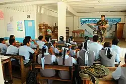 Santa Rosa Secondary School is a secondary school in Santa Rosa, in the Barima-Waini region of northern Guyana. The school was established in 1991,[1] making it the second secondary school in the area after the establishment of North West Secondary School in 1965. Prospective students undergo competitive examination and may take their Caribbean Examinations Council (CXC) examinations upon graduation. As of 2009, the school taught over 650 students, up from 264 in 2005. Of these 264, 72 of whom were housed in a dormitory sponsored by the Inter-American Development Bank. A third wing was built in 2009, adding nine new classrooms to the school. Jonny La'go Payne assumed the role of headmaster in 2005.
