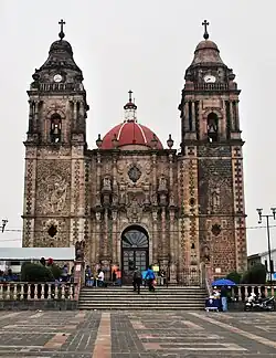 Santiago Tianguistenco (Spanish: [sanˈtjaɣo tjaŋɡisˈteŋko] ), often simply called Santiago by locals, is a city located in Mexico State about thirty km south of the state capital of Toluca. It is the municipal seat for the municipality of Tianguistenco. It is located in the southwest part of the Valley of Toluca at the edge of the Ajusco mountain range that separates it from Mexico City.[1] The name Tianguistenco (Tyanguistengko) is from Nahuatl and means “at the edge of the tianguis,” which is a traditional Aztec market. (Santiago comes from the town's early Spanish name of “Villa de Santiago.”) The section of the city where the industrial park is still bears this name.[2] Historically, the area was known as having one of the richest and best-stocked markets in the Toluca Valley. Today, it is still home to a large permanent municipal market as well as a weekly tianguis that covers much of the historic center.[1]