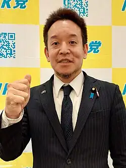 On 10 October 2019, he was elected to the House of Councillors after party leader Takashi Tachibana automatically lost his seat in the House of Councillors due to filing his candidacy for the Saitama Prefecture Supplementary Election.