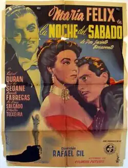 Saturday Night (Spanish: La noche del sábado) is a 1950 Spanish drama film directed by Rafael Gil and starring María Félix, Rafael Durán and José María Seoane.[1] It is a film adaptation of the 1918 play of the same name, Saturday Night: A Novel For The Stage In Five Tableaux by playwright Jacinto Benavente. The film's sets were designed by Enrique Alarcón.