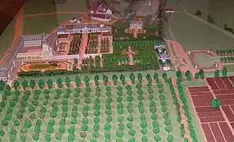 In 1720, Josep Charles (1694-1729), hereditary prince of Sulzbach constructed a summer palace in Oggersheim.[1][2][3] In 1729, a baroque Loreto chapel was added in the palace gardens.[3] When prince Joseph Charles passed away in 1729, the palace was not used for 22 years until 1752, when Count palatine Frederick Michael of Zweibrücken-Birkenfeld (1724-1767) turned Oggersheim into his summer residence.[1][2] With help of the architect Nicolas de Pigage (1723-1796), he fully reconstructed the palace between 1752 and 1757.[1][2] In addition, a large baroque garden in French style was created, including various pavilions, bath houses as well as a large orangery.[1][2][3]