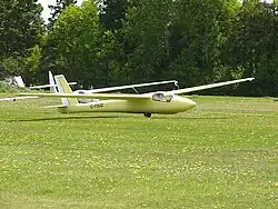 Schweizer SGS 1-34 showing wing planform. The tire is used to secure the wing in windy conditions