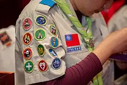 Scout badges are worn on the uniforms of members of Scouting organisations across the world in order to signify membership and achievements. There is a great variety of badges, not only between the different national Scouting organisations, but within the programme sections, as well.