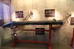 An ancient se board with four string posts, dated to the 5th–3rd centuries BC.[1] Made of wood painted in black and red lacquer, and carved with decorative patterns. The strings no longer exist.