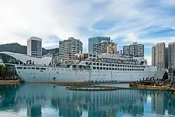 Sea World (Chinese: 海上世界; pinyin: Hǎishàng Shìjiè; Jyutping: hoi2 soeng6 sai3 gaai3) is a large tourist attraction and plaza in Shekou, Nanshan District, Shenzhen. Its main attraction is the large ship, Minghua, in the center of Sea World. The boat is surrounded by many shops and restaurants. This includes the Sea World Culture and Arts Center. And the statue of Nuwa.[1]