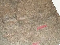 The history of the Trier robe is certain only from the 12th century, when Archbishop Johann I of Trier consecrated an altar which contained the seamless robe in early 1196.[1] Although biographies of Johann I state that this was not the first time the robe was displayed, there are no historical dates or events presented which predate 1196.[2] Sections of taffeta and silk have been added to the robe, and it was dipped in a rubber solution in the 19th century in an attempt to preserve it.[3] The few remaining original sections are not suitable for carbon dating.[3] The stigmatist Therese Neumann of Konnersreuth declared that the Trier robe was authentic.[4]