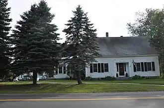 The Seavey House is located south of the village center of Goshen, on the west side of NH 10. It is a 1+12-story wooden Cape-style house, with a gabled roof and clapboarded exterior. Its structure is framed out of wooden planking 3 inches (7.6 cm) thick, set vertically, with dowels placed horizontally for lateral stability. The main facade is five bays wide, with sash windows arranged symmetrically around an elaborate Greek Revival entrance. The entry is recessed, with sidelight windows immediately flanking the door, and pilasters with peaked lintels outside the recess. The building corners also have pilasters, which rise to an entablature which spans the front. A smaller single-story ell extends to the left at a recess to the main block.[2]