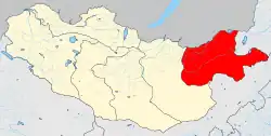 In 1923, following the Mongolian Revolution of 1921, the Sechen Khan aimag was renamed Khan Khentii Uulyn aimag (Хан Хэнтий уулын аймаг),[6] which named after the Khan Khentii Mountain.[4] In 1930, the four aimags were divided into the present day 21 smaller aimags, which were subdivided into sums.
