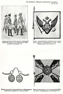 In the 1810s, recruits from the Lubny Hussar, Polish, Lithuanian and Tatar Uhlan Regiments were trained as cadets, in the St. Petersburg Noble Cavalry Squadron of the 2nd Cadet Corps, who were of various ages, from twelve-year-old boys to sixty-year-old old men, there were people who had St. George's Crosses for the Patriotic War.[3] The inconvenience of living together under such conditions was not slow to become apparent and caused the need to sort the cadets by age and ability, and after removing the unsuitable element, the remaining ones formed a horse squadron and a foot detachment awaiting promotion to the first officer rank.[3]