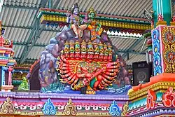 The tale of Ravananugraha (pictured) inspired a sequence in the film in which Rama Rao's character Ravana would sport ten heads all chanting Om Namah Shivaya while lifting the Kailasa hill on his shoulders