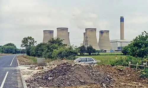 North-west of the crossing with the Hull and Barnsley Railway only parts of the embanked trackbed remain, the bridges and track having been removed. The line to Barlow continued to be used to the WD depot and was extended 1⁄2 mile (0.8 km) in October 1966 to provide connection to Drax Power Station when it was being built.[9] That section became Barlow Common nature reserve in 1986.[10] The crossing with the Hull and Barnsley now forms the southern perimeter of Drax Power Station, which is fed from the H&BR. South-east of the crossing little remains – the route of the line is now mostly replaced by the A645 road.
