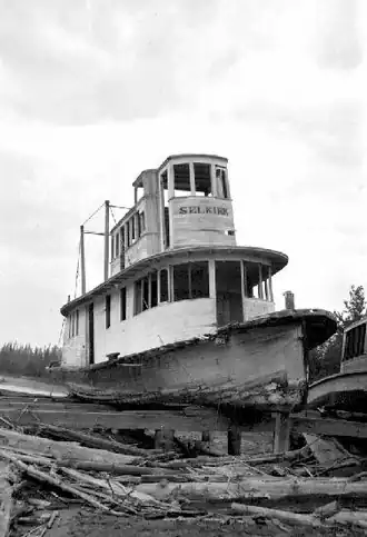 Forster did nothing with the vessel until the spring of 1899, when he had Selkirk loaded onto two flatcars and shipped by rail to Golden, BC, on the uppermost reaches of the Columbia River, where the vessel was reconstructed.[1] Forster did not however immediately place the vessel in commercial service.[2] In 1906 gasoline engines were installed in place of the original steam engines.[3] In 1913 Selkirk was sold to Capt. E.N. Russell.[1]