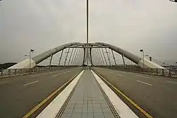 The Seri Saujana bridge is a new concept of a symmetric cable-stayed through-arch bridge. The bridge was designed by Michael Yamout of PJSI consultants, a Malaysian consulting engineering and architecture firm, as part of series of ten bridges built to access the Core Island within the new governmental city of Putrajaya.[2]