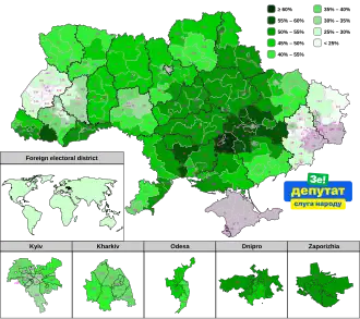 (in Russian) Results of the extraordinary elections of the People's Deputies of Ukraine 2019, Ukrainska Pravda (21 July 2019) - ^ a b c d e f g (in Ukrainian) "Servant of the people": Zelensky does not answer to the people whether the party will go to the polls, Civil movement "Chesno" (4 September 2018)