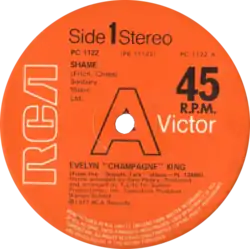 "Shame" is the debut single by American singer Evelyn "Champagne" King, written by John H. Fitch Jr. and Reuben Cross. It was released in September 1977 by RCA Records as part of King's debut album, Smooth Talk (1977). The extended remix was produced for the twelve-inch vinyl single and would later replace the album version of the song in late-1970s reprints of the album. "Shame" was successful on the US Billboard music charts and would become one of King's signature songs, though it varied on international music charts. The song was covered by Zhané for the 1994 film A Low Down Dirty Shame and Kim Wilde in 1996.