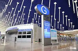 Construction on an additional satellite concourse facility that could accommodate further gates and terminal space started on 29 December 2015 and officially opened in September 2019.[19] It is the largest stand-alone satellite airport terminal buildings in the world at 622,000 square metres (6,700,000 sq ft).[20] This project will support 38 million passengers annually through 90 departure gates across two S1 and S2 concourses. Gates for domestic flights are labelled H, while the gates for international flights and flights to Hong Kong, Macau, and Taiwan are labelled G in both satellite concourses.