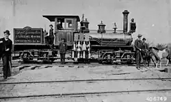 This Shay locomotive was constructed in 1898 by the Lima Locomotive Works[2] for the Boyne City Southeastern Railroad Company.[3] In 1918, it was sold to Michigan Forest Products in Strongs, Michigan, and then, in 1924, to William L. Saunders, President of the Cadillac Lumber & Chemical Company,[4] later called the Cadillac-Soo Lumber Company, for service in Sault Sainte Marie, Michigan.[3] It was used there until 1954, when T. Walter Kelly, Mayor of Cadillac and Saunders' son-in-law, obtained it from the Cadillac-Soo Lumber Company and donated the locomotive to the city of Cadillac.[2] It was partially restored in 1964, and further restored in 1985. It now serves as a tourist attraction in Cadillac's City Park.[2]