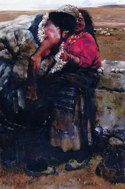 Sheepherder is a 1980 oil painting created by Chinese artist Chen Danqing in 1980 in Tibet.[1] This painting is considered one of the Tibet Series. He captures a moment where a sheepherder takes to kiss a woman.[2]