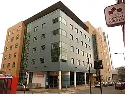 The council meets at Sheffield Town Hall on Pinstone Street in the city centre. The building was purpose-built for the council and was completed in 1897. It is a Grade I listed building.[41] The council also uses a modern office building nearby at Howden House, 1 Union Street, as additional offices and the main customer service centre. There are also smaller offices and area offices across the city.[42]