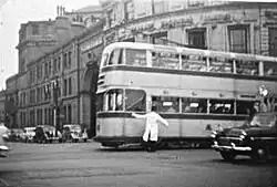 The prototype for this series, number 501, was built at Queens Road works in August 1946.[2] With comfortable upholstered seating for 62 passengers, it was the last car to be built at the works. From 1950 to 1952 35 more, numbered 502–536, were constructed by Charles Roberts & Co. of Horbury near Wakefield. They were carried on a four-wheel Maley & Taunton hornless type 588 truck with rubber and leaf spring suspension, powered by two Metrovick 101 DR3 65 hp motors. Air brakes were fitted, acting on all wheels, and electric braking was available for emergency use. Car 536, which entered service on 11 April 1952, was the last tram to be constructed for Sheffield. Representing the ultimate development of the traditional British four-wheel tram, the class worked for only 10 years, as Sheffield tramway closed in 1960. On 8 October of that year, car 513, ran specially decorated in the final procession; so too did sister tram 510, now preserved by the National Tramway Museum at Crich.[8]