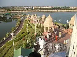 Shegaon has a tourist attraction called "Anand Sagar". The project's budget is ₹300 crore (3 billion rupees).[10][11] Anand Sagar was developed in 2005 by Shri Gajanan Maharaj Mandir Trust on about 140 hectares (350 acres) of land. it is a spiritual and entertainment centre for pilgrims, build around a Dhyan Mandir. There is a 9–11-metre-high (30–35 ft) statue of Swami Vivekananda above a meditation cell at the centre of the water reservoir. It is a replica of Vivekananda Kendra at Kanyakumari. There is an Amphitheatre which seats 3,500 people, used to organize cultural activities, functions, and exhibitions.[12] The water reservoir being developed is anticipated to meet existing and proposed needs of the Sansthan.