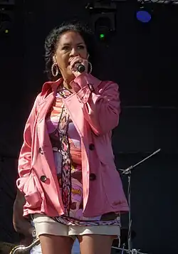 Sheila Cecilia Escovedo[3] (born December 12, 1957), known under the stage name Sheila E., is an American singer, songwriter, and musician. She is known for skills as a multi-instrumentalist, often preferring to play drums or percussion. She is sometimes referred to as the "Queen of Percussion".[4] Her music incorporated a wide variety of styles, including R&B, funk, jazz, pop, synth-pop, Latin pop, and salsa.