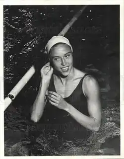 In the preliminary heats of the 1956 U.S. Trials, she swam the existing world record time of 1:04.6 for the 100 m freestyle. Despite her speed, American Olympic teams faced a strong challenge from the dominant Australian men's and women's team.[12][13] Other Walter Reed swimmers who qualified for the Olympics at the trials included Susan Douglas, Betty Mullens Brey and Mary Jane Sears.[14]