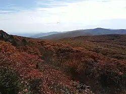 The climate of the park and its flora and fauna are typical for mountainous regions of the eastern Mid-Atlantic woodland, while a large portion of common species are also typical of ecosystems at lower altitudes. A. W. Kuchler's potential natural vegetation type for the park is Appalachian oak (104) within an eastern hardwood forest vegetation form (25), also known as a temperate broadleaf and mixed forest.[37]