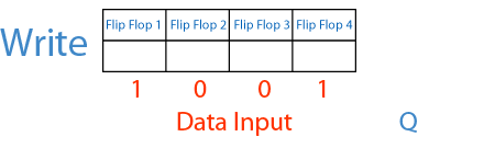 This arrangement performs destructive readout – each datum is lost once it has been shifted out of the right-most bit.