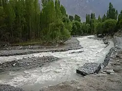 Shigar River (Urdu: دریائے شگر) is located in the mountainous Baltistan region of northern Pakistan. The Shigar is formed from the melted water of the Baltoro Glacier and Biafo Glacier. It flows through the Shigar Valley. The river is a tributary to the Indus River and meets the Indus in Skardu Valley.[1] The Shigar is the main right-bank tributary of the Indus River Valley in the Skardu Valley.[2]