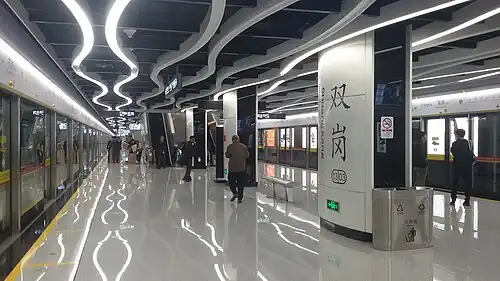 Shuanggang Station (Chinese: 双岗站), formerly Wenyuan Station (文园站) during planning,[1] is a station of Line 13 of the Guangzhou Metro in Huangpu District.