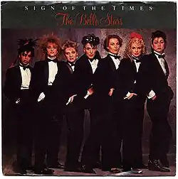 "Sign of the Times" is a song by English pop/new wave band the Belle Stars, released as the fourth single from the band's self-titled only studio album. It was their seventh single overall and first single written by the band since 1981's "Another Latin Love Song". The single was the band's only top ten hit, reaching No. 3 on the UK Singles Chart in the week of 19 February 1983,[1] and was subsequently listed by the Official Charts Company as the 31st best-selling single of 1983 in the UK.[2] It also entered on the Billboard Hot 100, peaking at No. 75 in the week of 14 May 1983.[3]