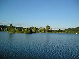 The artificial lake arose in the early 1970s during the construction of the nearby Süd Autobahn. Owned by the Villach city administration, it is part of a publicly accessible recreation area and a destination for bathers in summer and ice-skaters in winter. In 1991 it held the Water Ski World Championships.