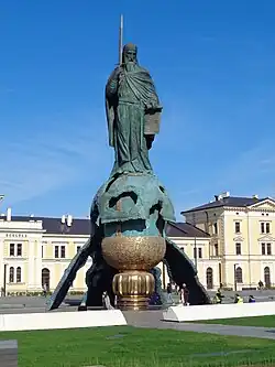 Nemanja was born around the year 1113 or 1114 AD in Ribnica, Zeta (in the vicinity of present-day Podgorica, the capital of Montenegro). He was the youngest son of Zavida, a Prince of Zahumlje, who after a conflict with his brothers was sent to Ribnica where he had the title of Lord. Zavida (Beli Uroš) was most probably a son of Uroš I or Vukan. Since western Zeta was under Roman Catholic jurisdiction, Nemanja received a Latin baptism,[11] although much of his later life was spent balancing Western and Eastern forms of Christianity.