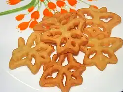 Once the important rituals are done, the partying begins as families mingle in the streets, homes are thrown open and children are let out to play. The ubiquitous plantain is dished out alongside celebratory feasts of Kavum (small oil cake) and Kokis (crisp and light sweetmeat, originally from the Netherlands). However, the extent of outdoor activities depends largely on the neighbourhood. The suburban communities tend to have such social gatherings than urban or city dwellers. The blossoming of the flowers of the Yak Erabadu is associated with the advent of the Sinhalese New Year.[9]