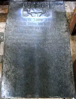 Ledger Stone of Sir John Bampfylde, 1st Baronet, in nave of Poltimore Church